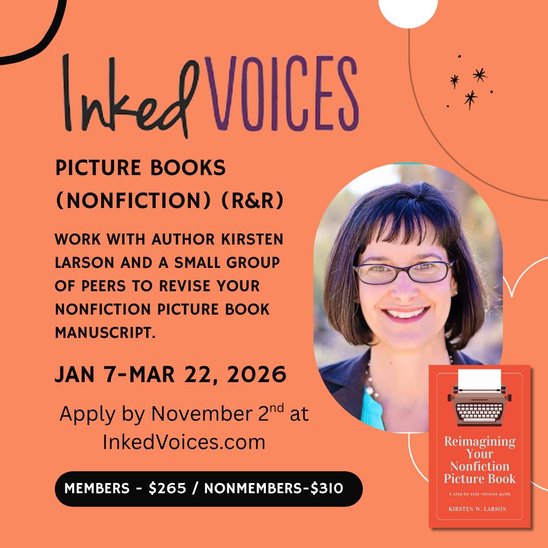 Work with author Kirsten Larson and a small group of peers to revise your nonfiction picture book manuscript. Writers will engage deeply with their own work and that of their peers through workshopping, revision, and craft discussion. Learn more and apply at Inked Voices.