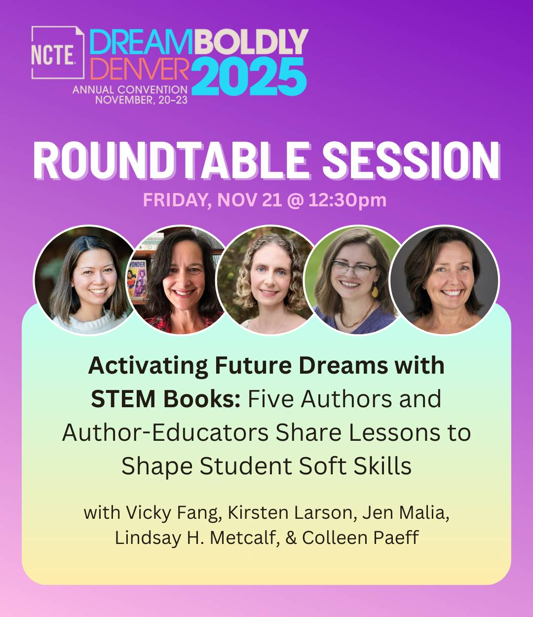 NCTE Roundtable: "Activating Future Dreams with STEM Books," Nov. 21 at 12:30 p.m. (Denver Convention Center)